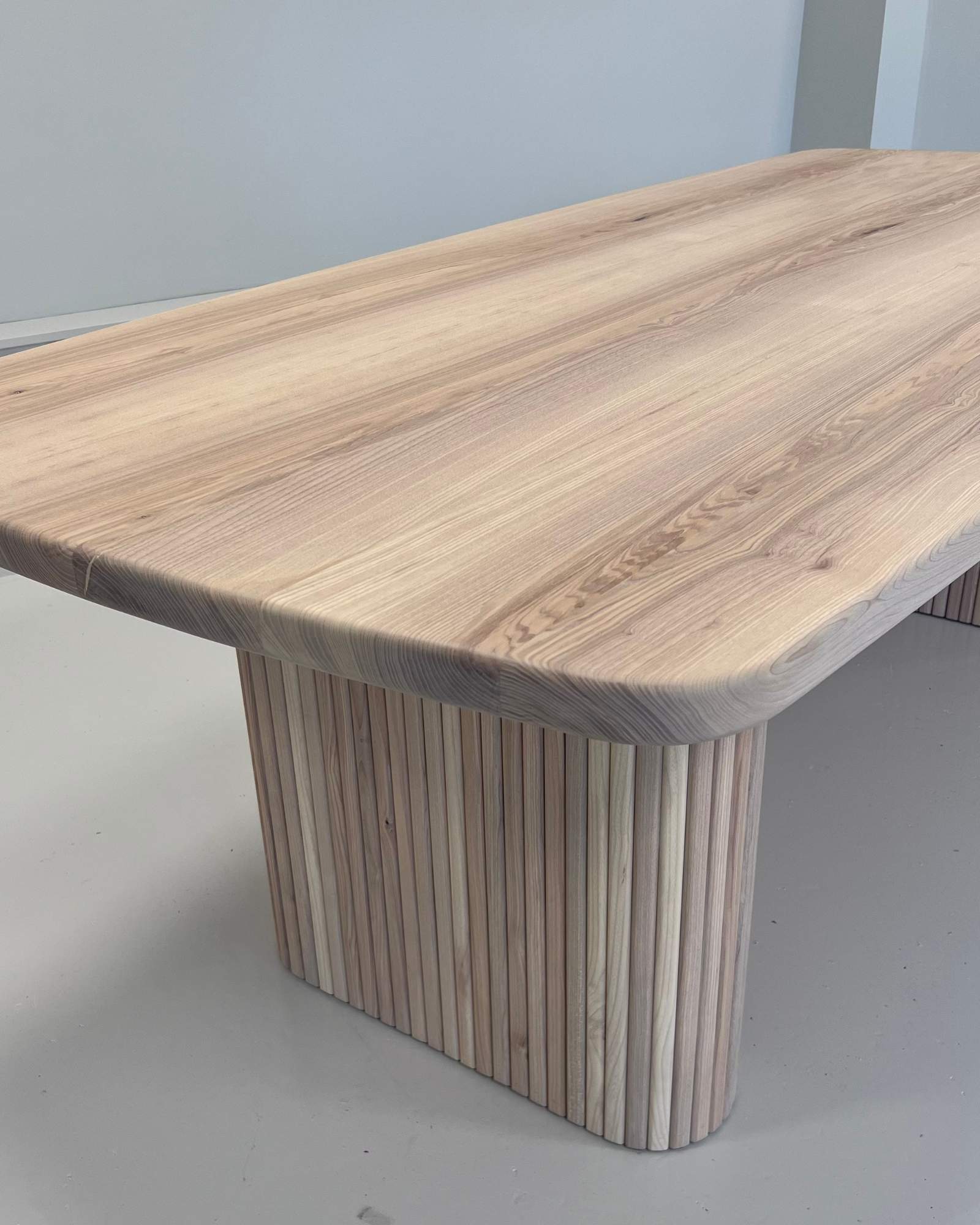 Bootsförmiger Tisch aus Esche auf Lamellengestell