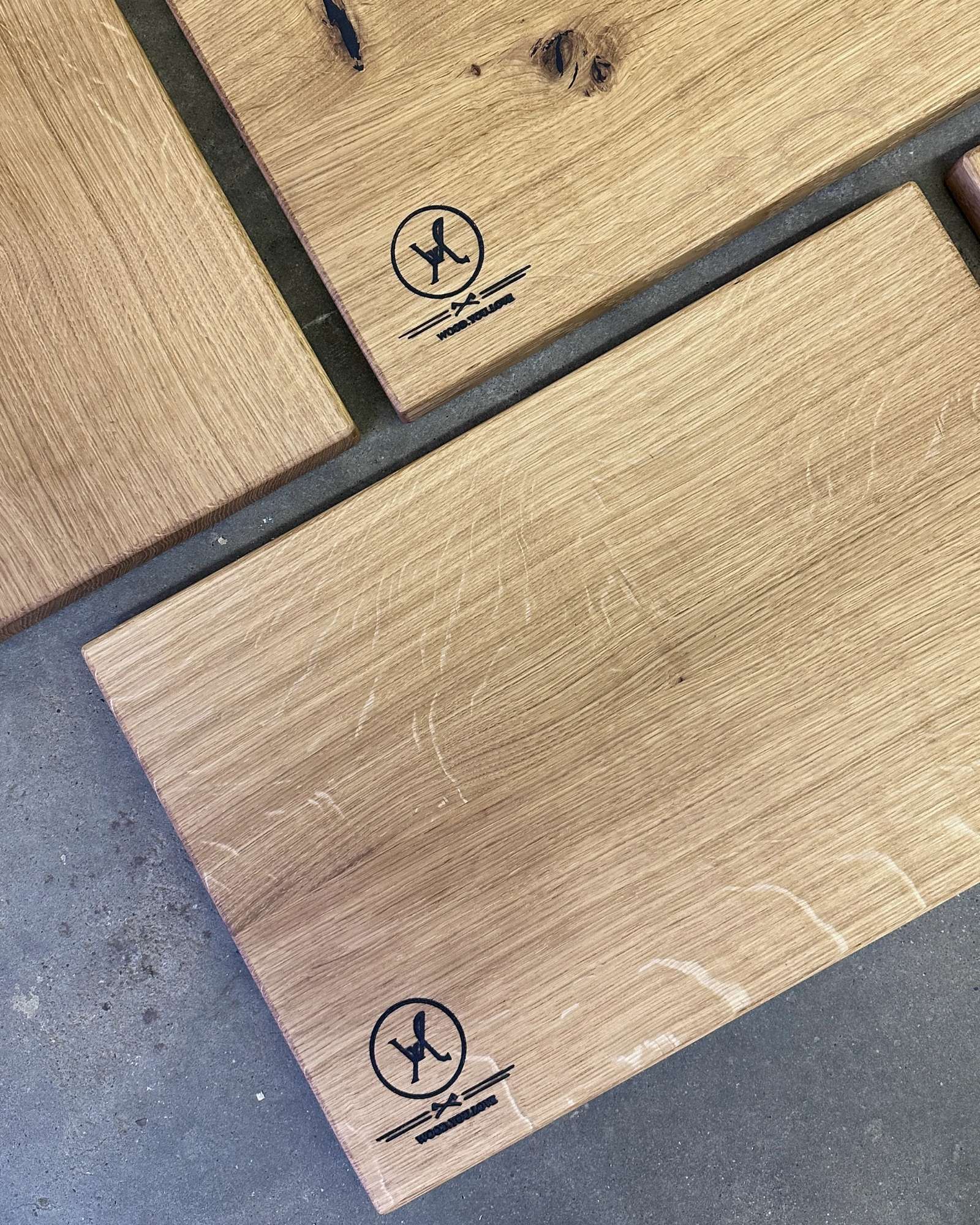 Wir gestalten die Bretter meist aus einem Stück und achten auf die möglichst stehenden Jahresringe, sodass das Brett über die Jahre gerade bleibt. Das Öl könntet ihr selbst noch wählen, wenn ihr nach dem Kauf Kontakt zu uns aufnehmt.