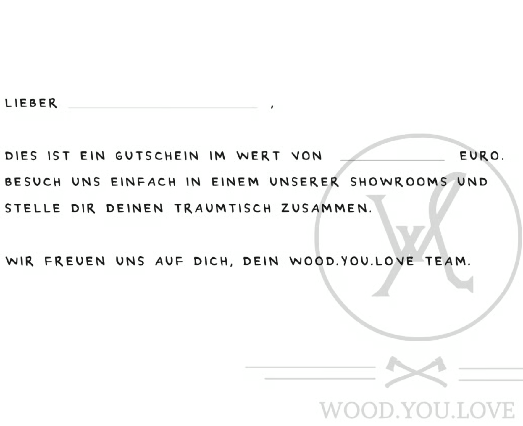 Dein Partner/Partnerin sagte nebenbei, dass sie unbedingt bald einen Esstisch von WYL möchte? Auch dann ist dieser Gutschein der perfekte Zuschuss.