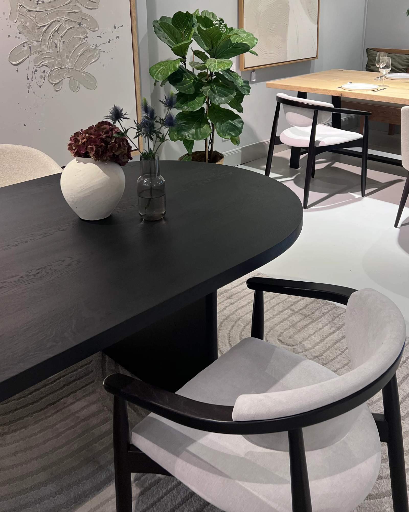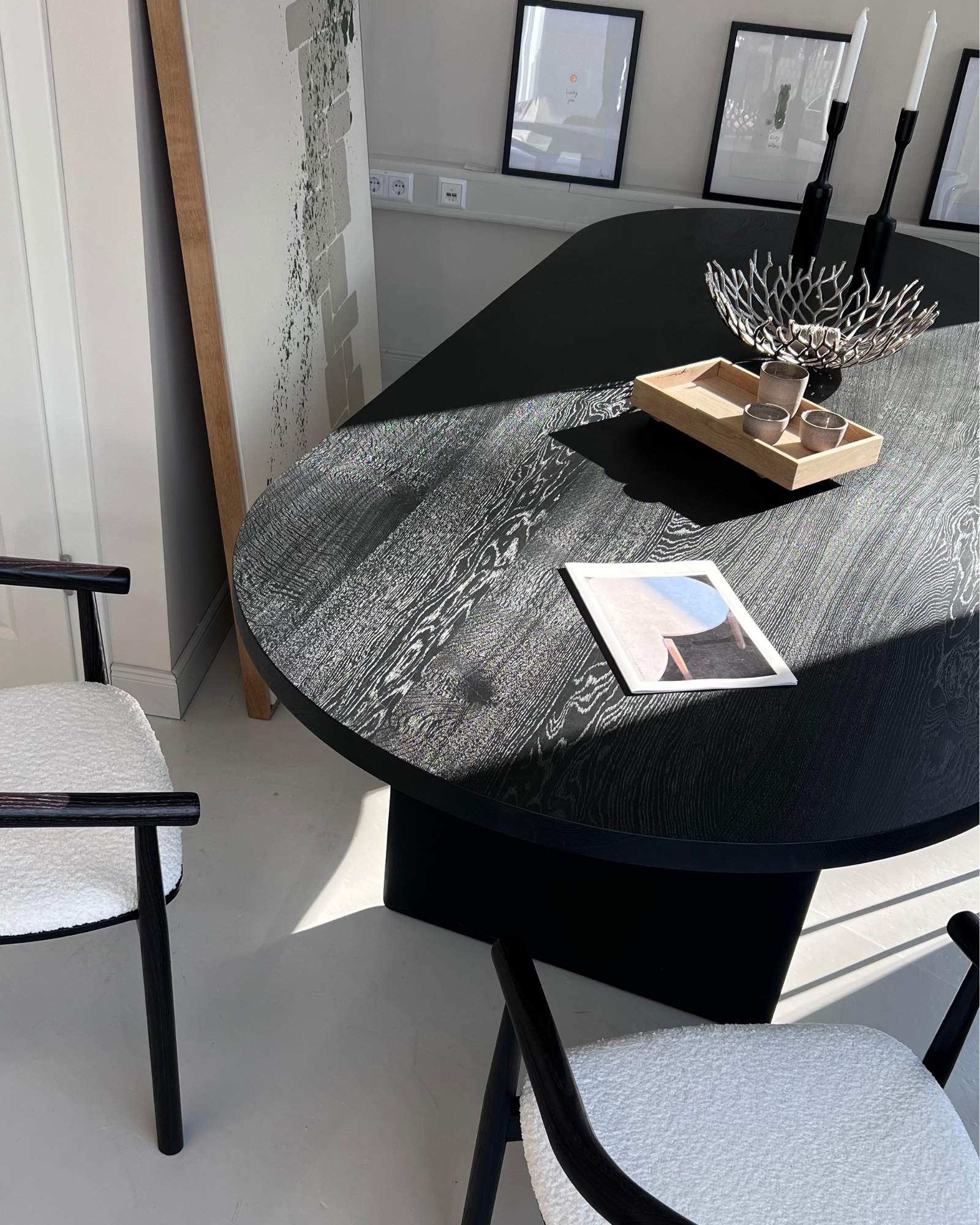 Mit seiner schwarz behandelten Eiche setzt MORÉ einen ruhigen, eleganten Akzent. In hellen Interieurs schafft er Kontrast, in dunkleren Tiefe.