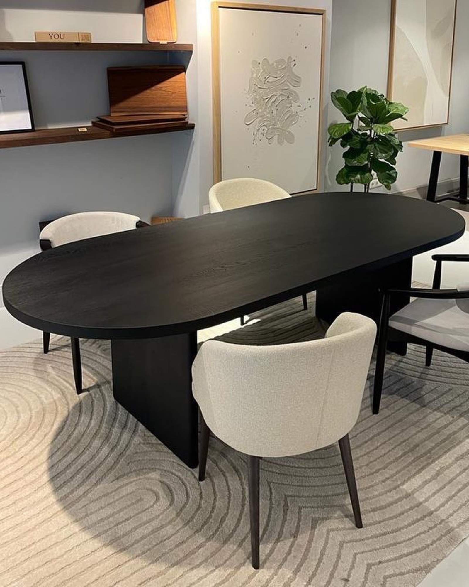 Ovaler Eichentisch in schwarz