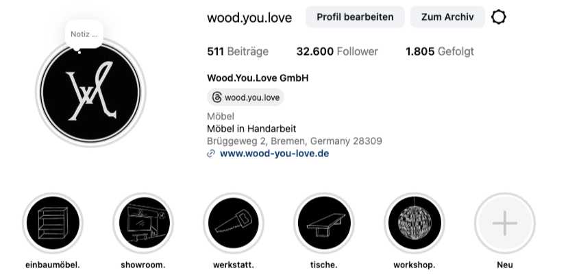 Bei Instagram bekommst du Einblick in aktuelle Projekte und unsere tägliche Arbeit in der Werkstatt.