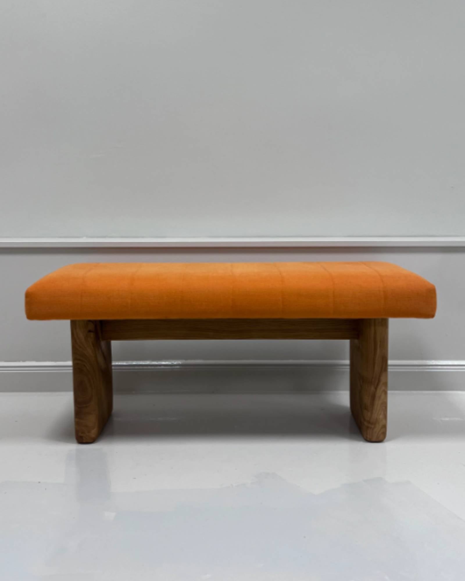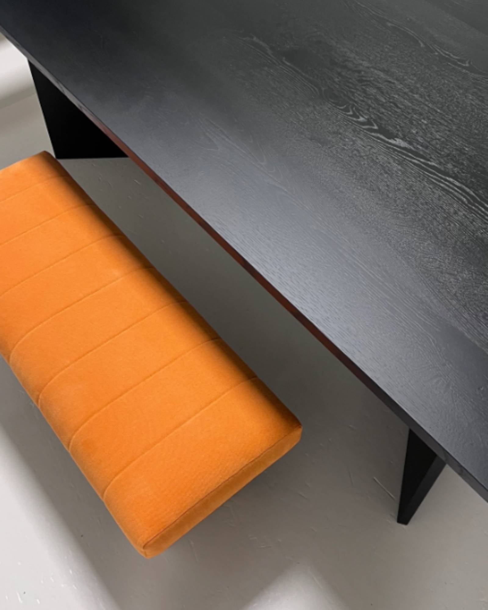 Der APEROL SITZ wird in Bremen gepolstert und vernäht – sorgfältig, robust und mit Anspruch an Form und Verarbeitung. Das auffällige Polster sitzt fest auf dem massiven Holzgestell und überzeugt durch Sitzkomfort und Langlebigkeit.
